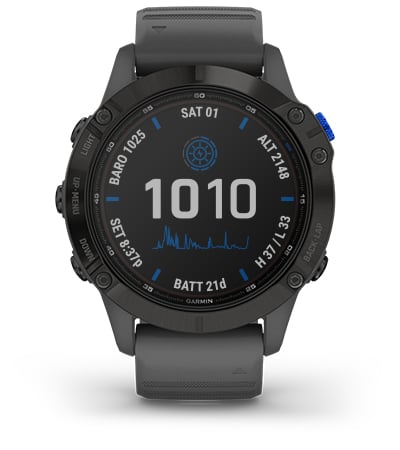 fenix 6 Pro Solar is a solar charging smartwatch featuring a Power Glass lens, which helps the fenix 6 Pro Solar stay on and performance ready for weeks.