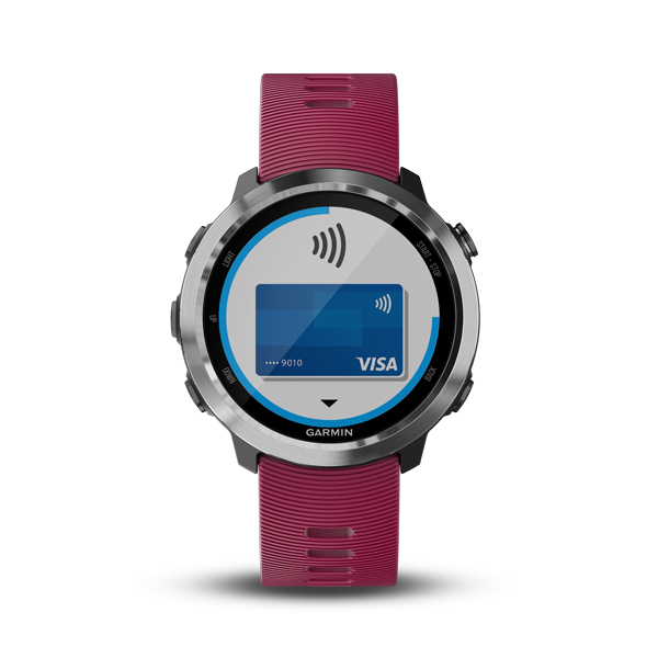 GPS running smartwatch with Garmin Pay contactless payments, wrist-based heart rate and music